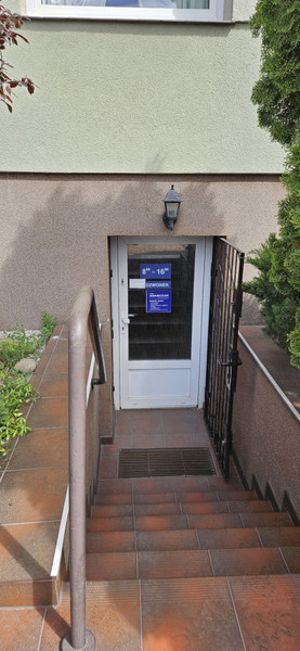 W piwnicy na podłodze kafle, od frontu budynku osobne wejście do pomieszczeń piwnicy ze szklanymi drzwiami – było wykorzystywane jako wejście do pracowni/sklepu.