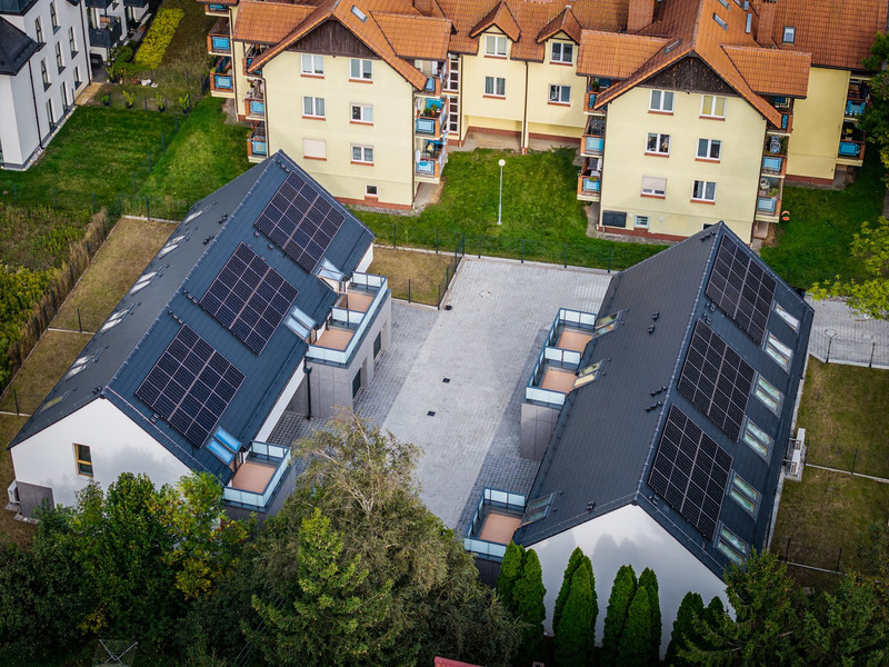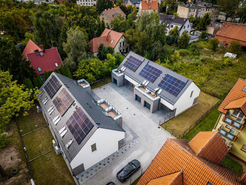 Domy zostały zaprojektowane w nowoczesnym stylu i wykonane z wysokiej jakości materiałów, co gwarantuje trwałość i estetykę na lata. Inwestycja ta to także energooszczędne technologie, takie jak: