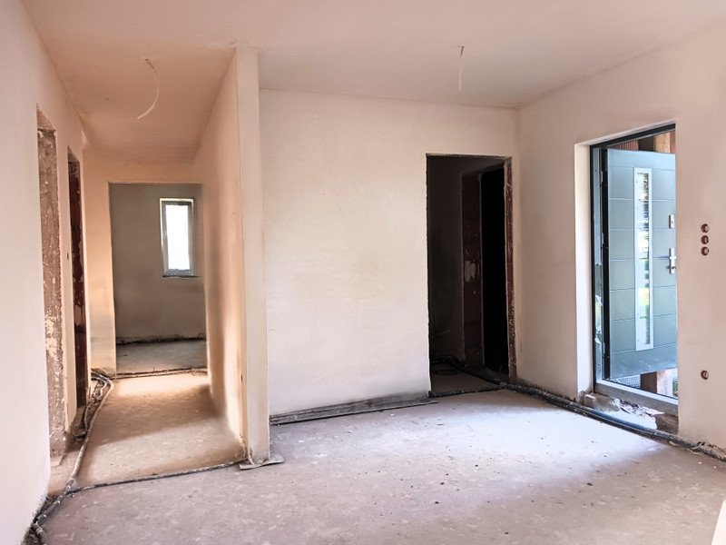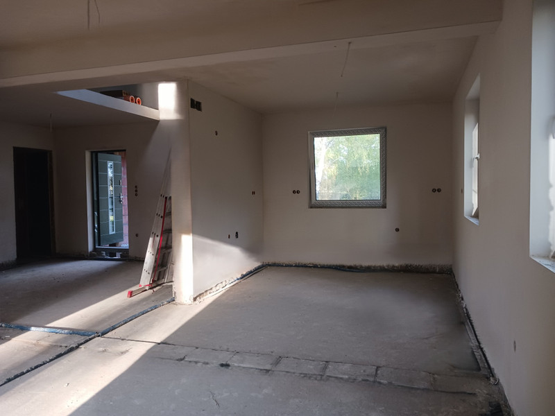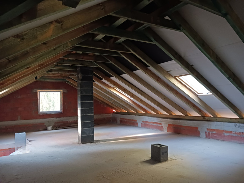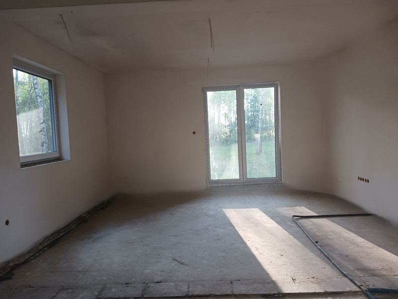 Ogromną zaletą jest stan budynku ( surowy zamknięty ) oraz jego usytuowanie na dużej , częściowo zalesionej działce co stwarza okazję adaptacji i aranżacji calej przestrzeni według indywidualnych potrzeb.