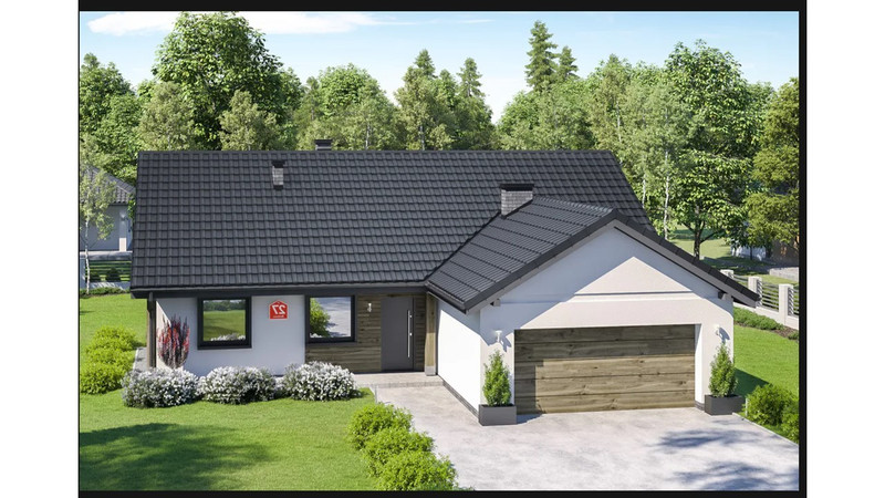 Budynek zawiera: przedpokój /wiatrołap z wyjściem na poddasze, salon z aneksem kuchennym, 3 sypialnie, toaletę, łazienkę, kotłownię z przejściem do garażu dwustanowiskowego, poddasze z możliwoścą dowolnej adaptacji: w tym celu dokonano zmian w projekcie ( wykonano otwór w stropie na górę pod kontem budowy schodów przez co przesunięto ścianę w wiatrołapie , dodano okna szczytowe oraz połaciowe, wszystkie zmiany zostały zawarte w projekcie , widoczne również na zdjęciach, projekty: oryginalny oraz po zmianach dostępny do wglądu).