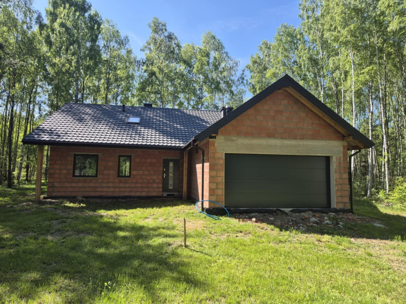 Zastosowano okna trzyszybowe założono instalację elektryczną wewnętrzną i zewnętrzną oraz tynki wewnętrzne. Zamontowano drzwi antywłamaniowe oraz automatyczną bramę garażową.