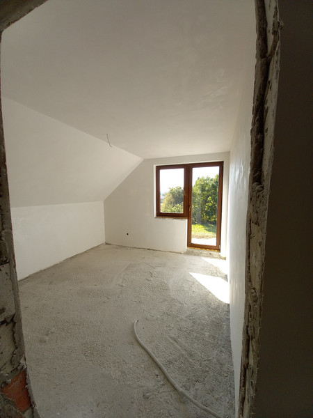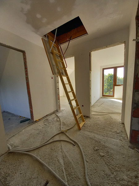· pomieszczenia na piętrze (sypialnie oraz korytarz z klatką schodową) posiadają tynki
