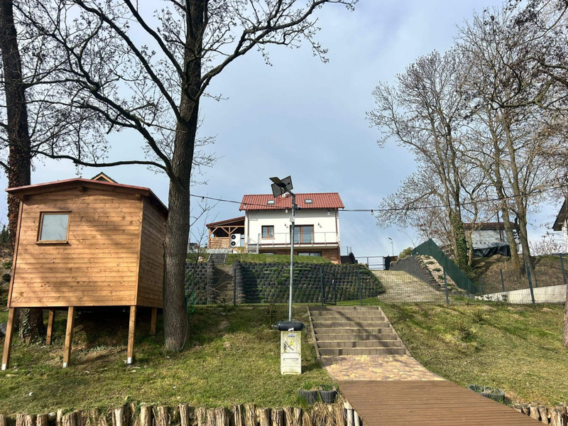 Nieruchomość usytuowana jest na wzgórzu, co gwarantuje spektakularne widoki na jezioro oraz pełną prywatność. To miejsce stworzone zarówno do komfortowego życia na co dzień, jak i relaksu w otoczeniu natury – z dala od zgiełku, a jednocześnie w kameralnym sąsiedztwie.