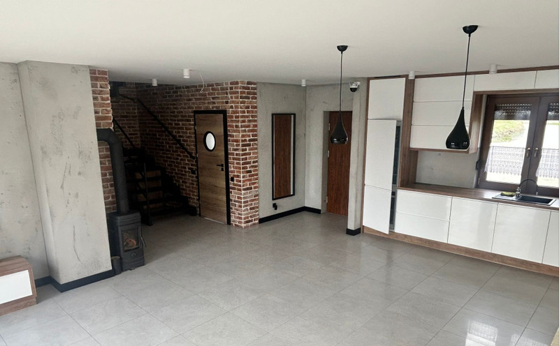 – przestronny salon z aneksem kuchennym i dużymi przeszkleniami