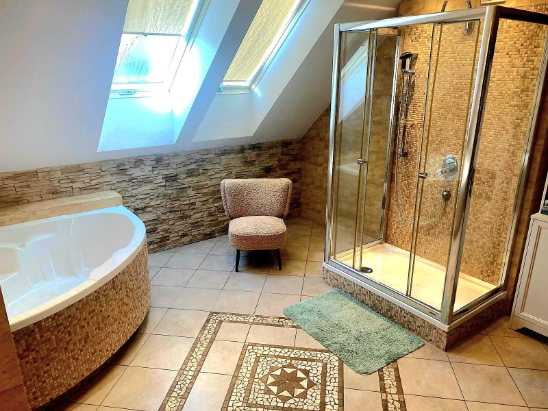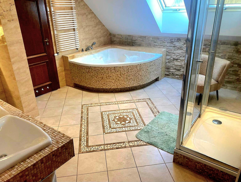 • Pokój kąpielowy z sauną - Twoja prywatna strefa relaksu bez wychodzenia z domu.