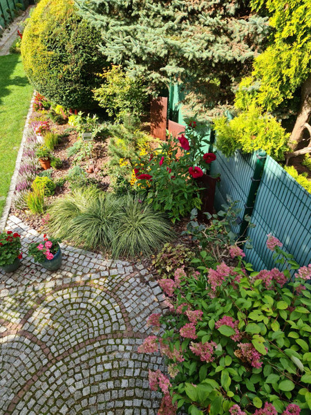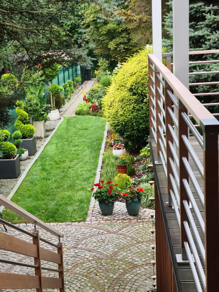 Ten ogród to było zawsze nasze oczko w głowie. Na zdjęciach dołączonych do tej oferty można zobaczyć jak jest zlokalizowany wśród otaczającej go zieleni i jak wiele pięknych nasadzeń tam się znajduje-prawdziwa oaza w sercu przemysłowego miasta. Do kompletu ten nasz pięknie wkomponowany taras (wchodzący w tą zieleń) z markizami przeciwsłonecznymi. Zabudowany też jest licznik wody "na ogród".