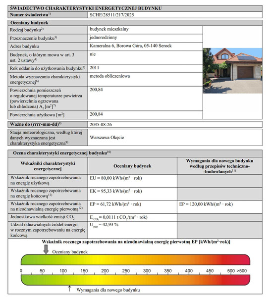 • Świadectwo Energetyczne SCHE/****/***/2025 A+