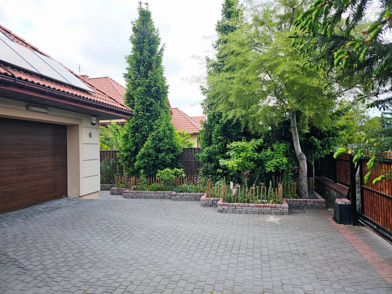 • Bardzo zadbany ogród z wyjątkowo pięknymi nasadzeniami i pięknym trawnikiem z automatyczną kosiarką Husqvarna i automatycznym systemem nawadniania