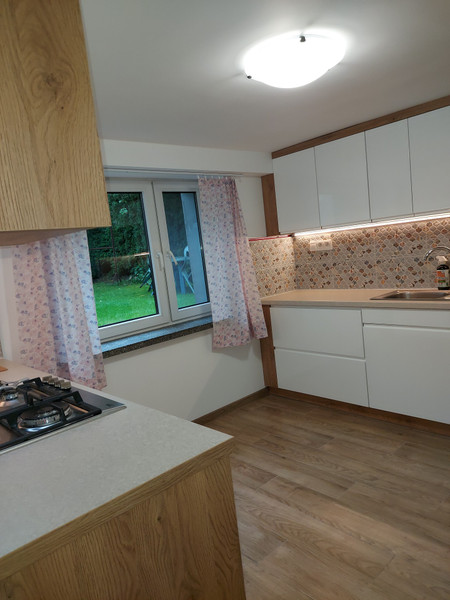 • przyziemie: niezależne mieszkanie (3 pokoje, kuchnia, łazienka, pom. gospodarcze), po gruntownym remoncie w 2021 roku – całe wyposażenie jest nowe, piec gazowy wymieniony rok temu