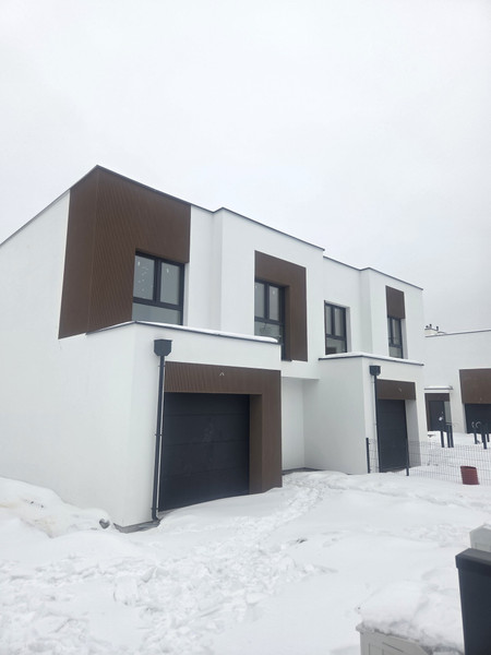 Domy budowane są z użyciem trwałych materiałów – ściany nośne wykonano z pustaków typu Porotherm, a strop i schody – z żelbetonu. Całość została ocieplona styropianem, co wpływa na efektywność energetyczną budynków.