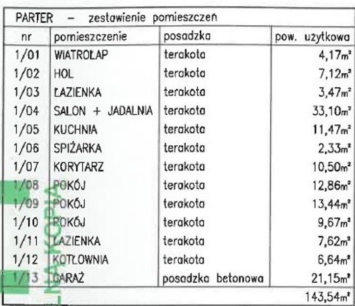 143,54 m2 (bez tarasu) w tym garaż 21,15 m2