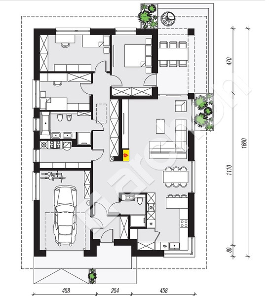 - Oświetlenie nad wejściem, nad garażem i od ogrodu na elewacji