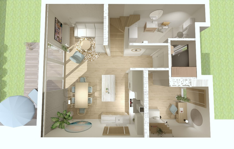 powierzchnia parteru 54,98m2 (wiatrołap 2,69 m2, komunikacja 2,55 m2, toaleta 6,50 m2, salon + kuchnia 33,03 m2, pokój 10,21 m2,
