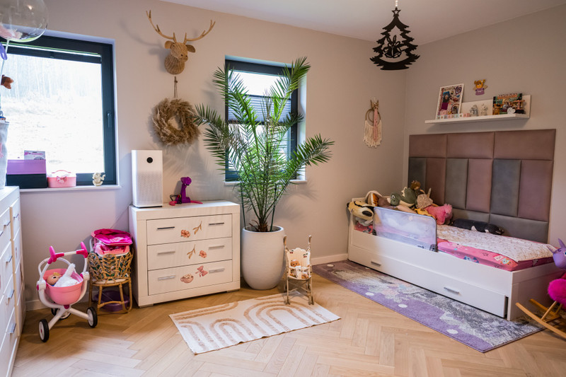 • Cztery pokoje (sypialnia z garderobą, dwa pokoje dziecięce, gabinet)