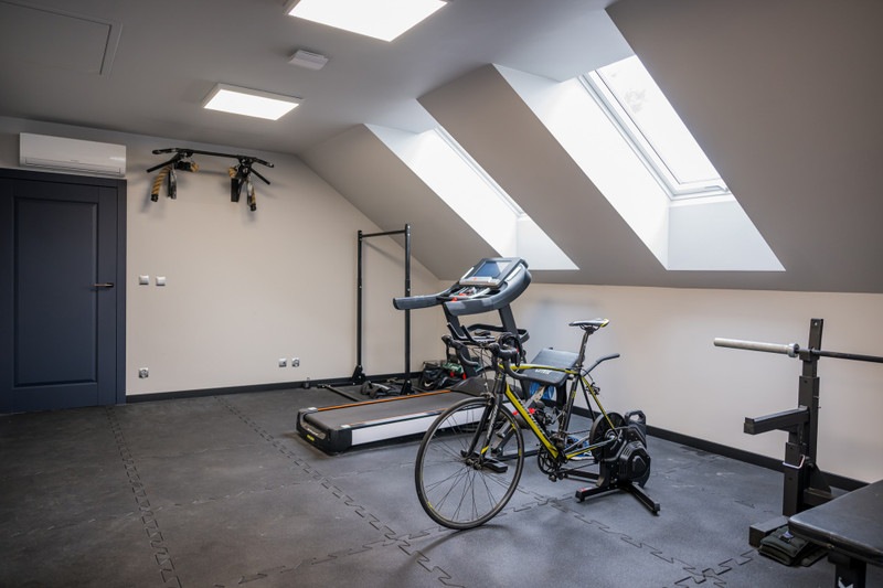 • Na piętrze: wykładzina z gąbką, w siłowni - puzzle gumowe