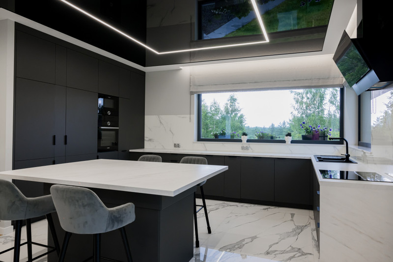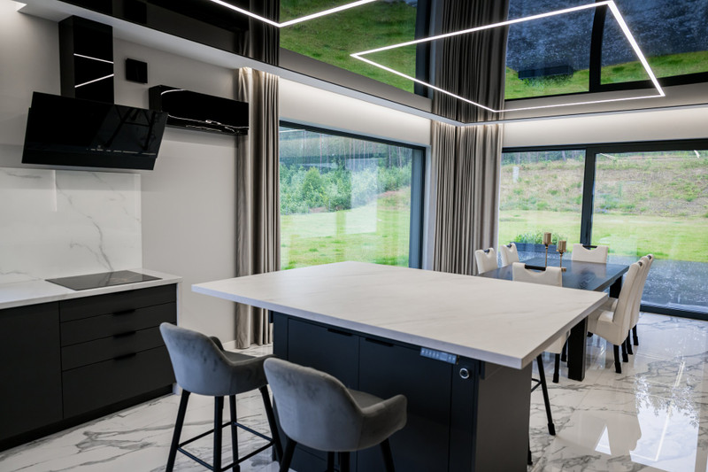 • Sufity napinane i podświetlane w salonie oraz wiatrołapie
