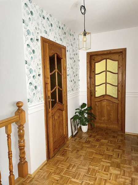 Duża powierzchnia całkowita budynku – 225 m².Funkcjonalny układ pomieszczeń z możliwością wydzielenia dwóch niezależnych lokali.