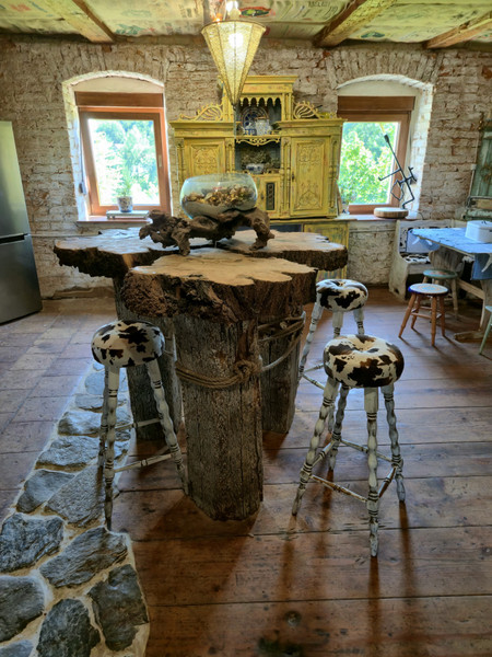 Na posesji znajduje się również stajnia z oryginalnymi sklepieniami krzyżowymi obecnie w trakcie renowacji z przeznaczeniem na salon kominkowy. Obok domu znajdują się nastrojowe kamienne ruiny, które pełnią funkcję patio idealne miejsce do wypoczynku.