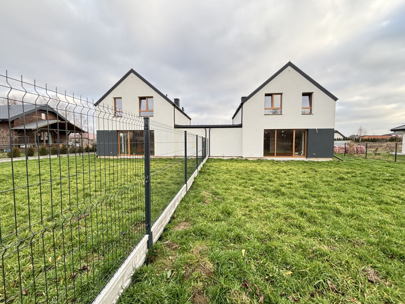 Zapraszamy do zapoznania się z ofertą sprzedaży nowoczesnego domu w zabudowie bliźniaczej, dwulokalowej, . Cena 850000 PLN dotyczy jednego lokalu w stanie deweloperskim.Każdy lokal oferuje powierzchnię 110m², do której przynależy przestronna działka o powierzchni 500m² –. Dom znajduje się w trakcie realizacji do stanu deweloperskiego,