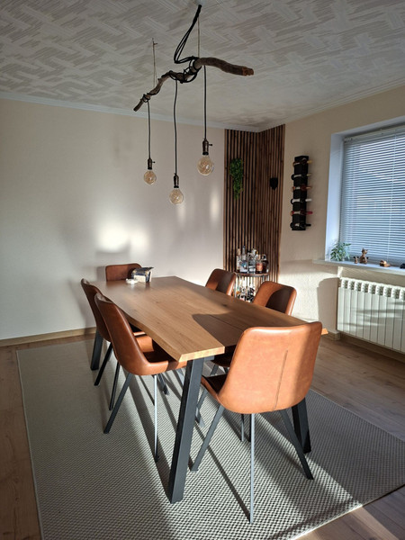 Aktualnie dom ogrzewany jest dwufunkcyjnym kotłem gazowym (gaz miejski). W kotłowni został poprzedni piec na ekogroszek.