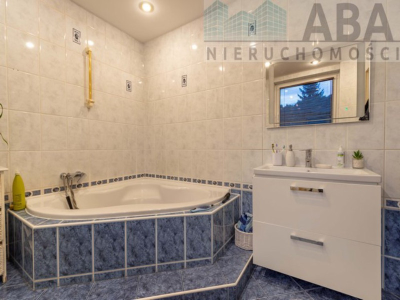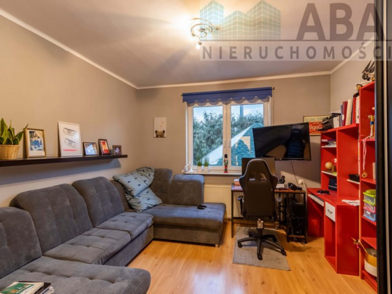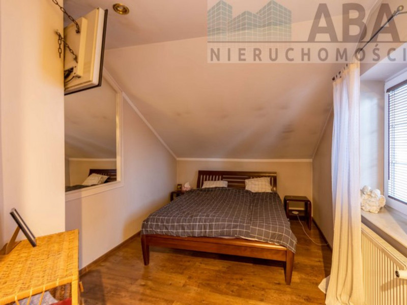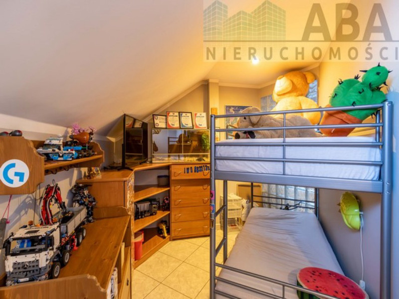 W sypialni na podłodze panele, na ścianie emulsja. W pokoju na poddaszu podłogi terakota oraz ściany malowane emulsją. W kuchni na podłodze terakota, meble w zabudowie, płytki wzdłuż ciągu kuchennego, sufit i ściany malowane emulsją. W łazience podłogi terakota, ściany wyłożone glazurą do sufitu. Schody dębowe. Szafa w zabudowie na korytarzu na poddaszu. Grzejniki aluminiowe. W salonie kominek, podłogi terakota, na ścianie emulsja. Drzwi wewnętrzne płycinowe.