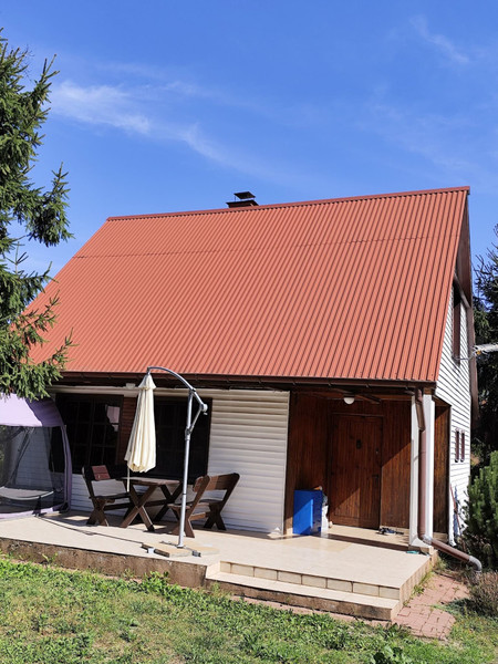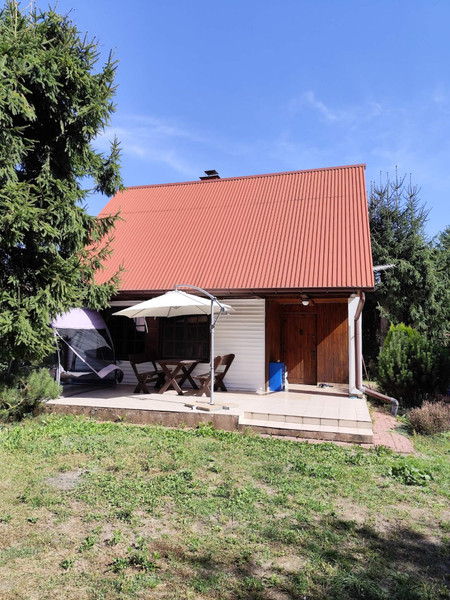 Dom letniskowy piętrowy. 3 sypialnie na piętrze. Łazienka z WC, jadalnia z aneksem kuchennym, salonik z TV. Własne ujęcie wody - studnia głębinowa. Szambo 8 m sześć. Teren ogrodzony, dodatkowo brama zamykana do osiedla domków. Dom ocieplony - wata mineralna i siding. Wykonane nawadnianie automatyczne działki. Dom wyposażony w kominek oraz meble.