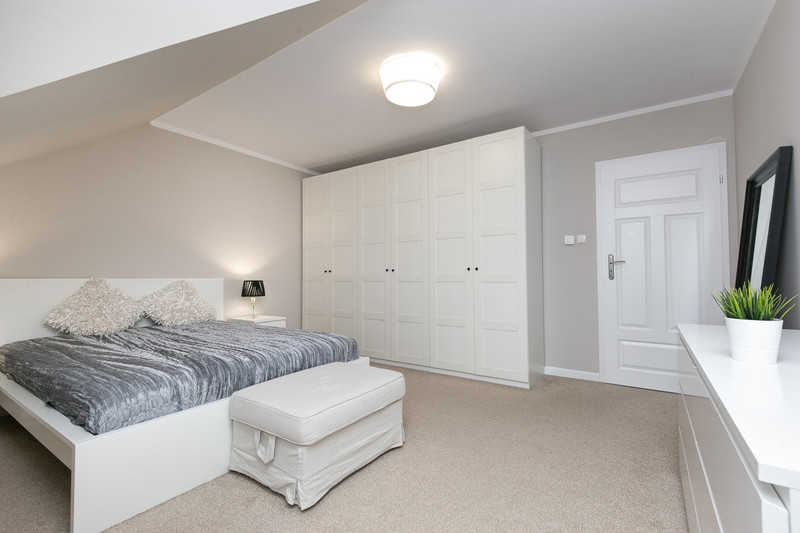 Na pierwszym piętrze cztery duże sypialnie, łazienka oraz 2 balkony nowo wykończone systemem wentylowanym - posadzki antypoślizgowe i mrozoodporne. Z każdej sypialni wyjście na balkon.
