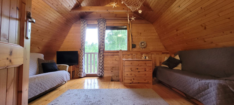 • Górny salon z wyjściem na balkon i widokiem na las;