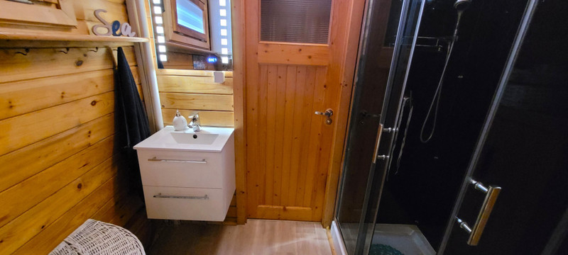 • Łazienka z WC, kabina prysznicowa i pralka;