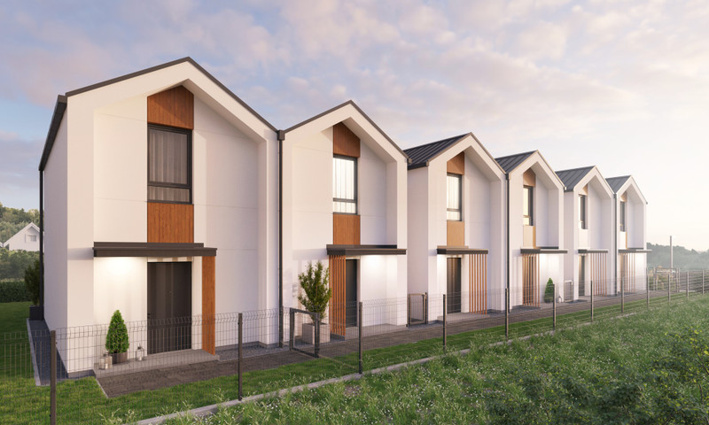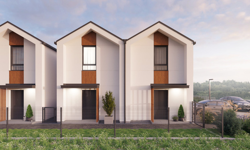 Inwestycja obejmuje 6 domów w zabudowie bliźniaczej, każdy o powierzchni 50,64 m².