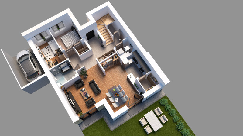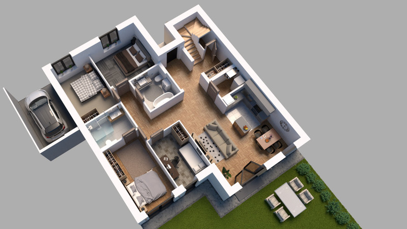 • garaż w bryle budynku oraz dodatkowe miejsca postojowe