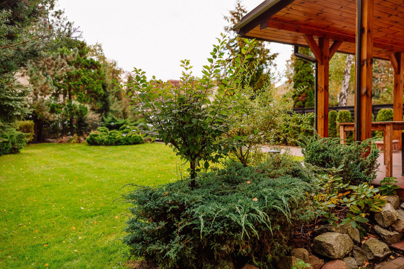 Zadbany, zielony ogród, zapewnia przestrzeń do odpoczynku.