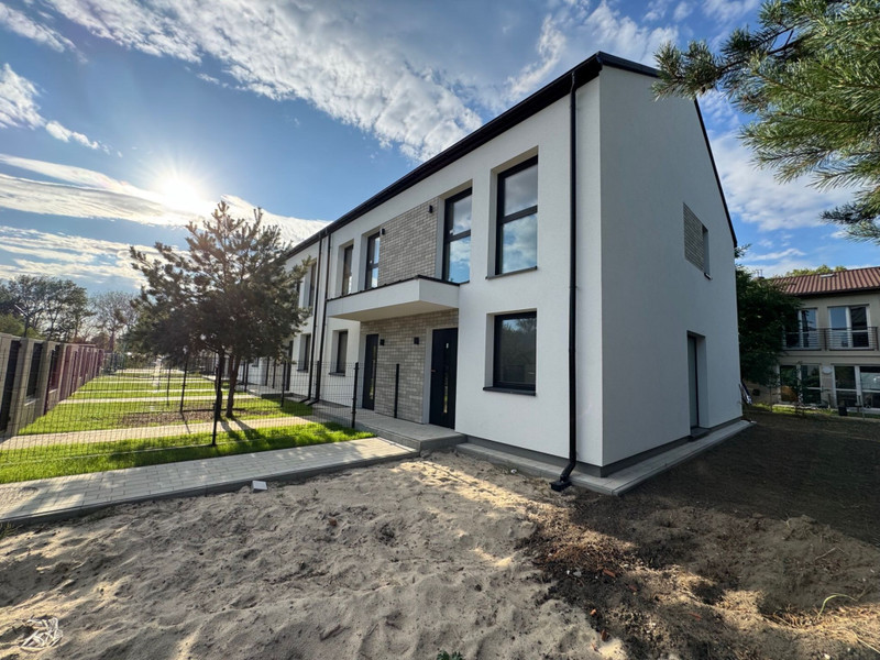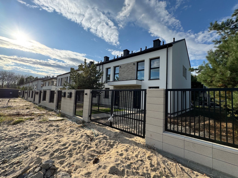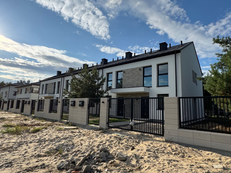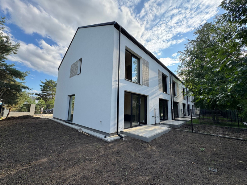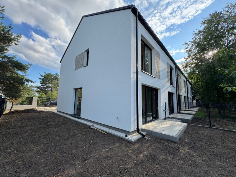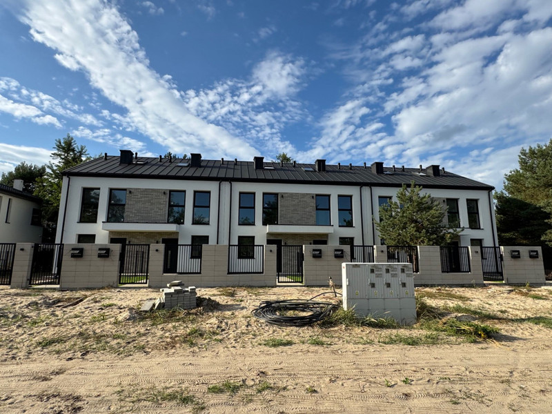 Oferujemy do sprzedaży nowy bezczynszowy lokal mieszkalny – segment środkowy o powierzchni 95m2, w stanie deweloperskim. Składa się on z parteru, pierwszego piętra i poddasza do własnej adaptacji z przynależnym ogródkiem z przodu i tyłu budynku. Oferowany segment mieści się na kameralnym osiedlu, składającym się z trzech nowopowstałych budynków dwulokalowych w zabudowie szeregowej, w sumie 6 lokali mieszkalnych. W sąsiedztwie osiedla znajduje się niska, nowa zabudowa jednorodzinna, bliźniacza i szeregowa, tworząca wyjątkowo przyjemne otoczenie. Inwestycja położona jest w bardzo dobrej lokalizacji Wawra przy ulicy Ogórkowej w otulinie obszaru chronionego Natura 2000. Powierzchnia użytkowa (parter + piętro) wynosi 74,33m2 w skład czego wchodzi przestronny salon z aneksem kuchennym (32,02 m2), trzy sypialnie, garderoba, łazienka, toaleta, kotłownia, oraz przedpokój z miejscem na szafę w zabudowie. Dodatkowo mieszkanie posiada duże poddasze z dwoma oknami dachowymi o powierzchni podłogi 38m2 do własnej adaptacji. Powierzchnia poddasza do wykorzystania pod aranżację pomieszczenia z uwagi na wysokość to około 20m2 co daje dużo przestrzeni i możliwości aranżacyjnych. Mieszkanie posiada taras o powierzchni 5m2 z tyłu budynku i dwa ogródki z tyłu i przodu budynku o powierzchni łącznej 57m2, oraz dwa miejsca postojowe, jedno w cenie lokalu, drugie dodatkowo płatne 20 tyś. zł. Teren osiedla został ogrodzony co gwarantuje poczucie bezpieczeństwa. Parkingi i chodniki zostaną wykonane z kostki brukowej firmy Certus. Elewacja budynku została wykończona cegłą klinkierową firmy Roben i białym tynkiem sylikonowym. Budynek został wyposażony w instalację domofonową, światłowód, została przygotowana również instalacja pod montaż systemu alarmowego. Budynki wykonane są w technologii tradycyjnej, ściany murowane z pustaka Wienerberger Porotherm i cegły silikatowej, stropy żelbetowe. Mieszkania podłączone są do miejskiej sieci wodociągowej, każde z mieszkań wyposażone jest we własną pompę ciepła typu powietrze-woda co w połączeniu z ociepleniem 20cm styropianem grafitowym, nowoczesnymi oknami 3-szybowymi i ogrzewaniem podłogowym na całej powierzchni mieszkania gwarantuje niskie koszty eksploatacji. Lokalizacja mieszkania gwarantuje spokój, i piękne tereny spacerowe a zarazem bliskość wielu udogodnień, wjazd na południową obwodnicę warszawy 700m, przystanek autobusowy 400m, Biedronka 500m i wiele innych. Prace budowalne stanu deweloperskiego są na ukończeniu, formalnie będzie gotowy do sprzedaży do końca listopada 2025. Oferta bezpośrednio od dewelopera, brak podatku PCC 2%.