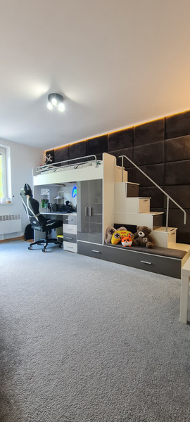 Większość wyposażenia widocznego na zdjęciach zostaje na stanie i jest w pełni sprawne (m.in. duży telewizor 85 cali i lodówka samsung, łóżko piętrowe, duże łózko hotelowe w sypialni, narożnik na wymiar i inne).