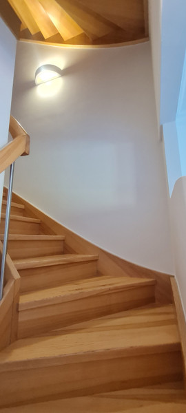 • PARTER: duży jasny salon (bez ścian działowych) małą łazienką i WC, osobna pralnia pod schodami