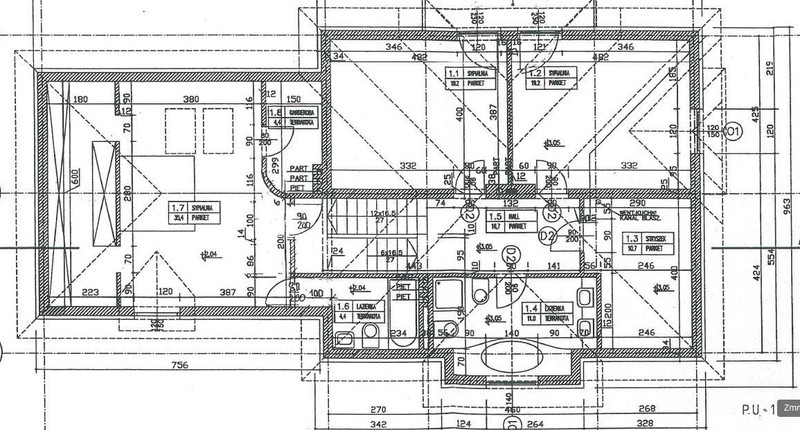 Metraż 304 m2 to wartość powierzchni podłogi (np. do zakupu okładziny), podana w widocznym na zdjęciach projekcie architektonicznym. Powierzchnia użytkowa podawana w innych sytuacjach może często znacznąco się różnić, gdyż nie uwzględnia przejść komunikacyjnych - wiatrołapu, schodów i korytarzy, skosy i pomieszczenia piwniczne są inaczej liczone.