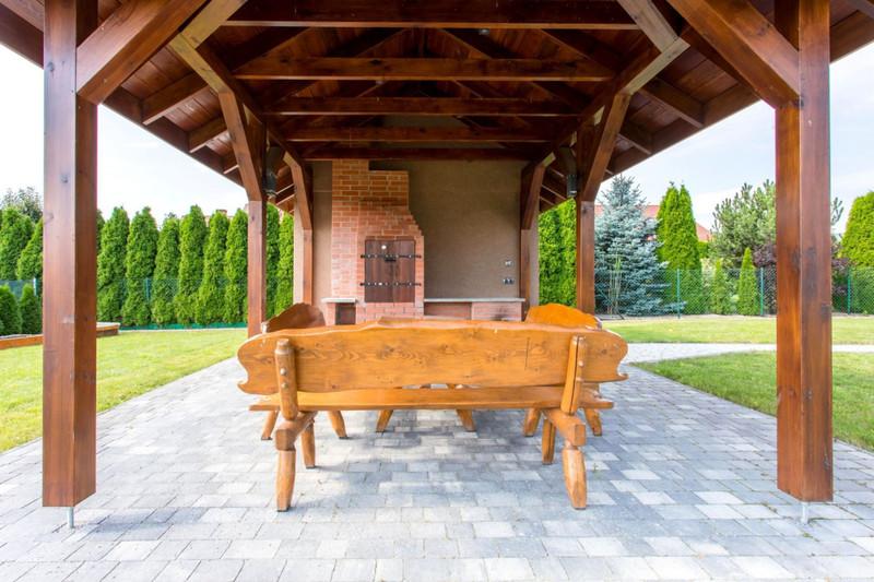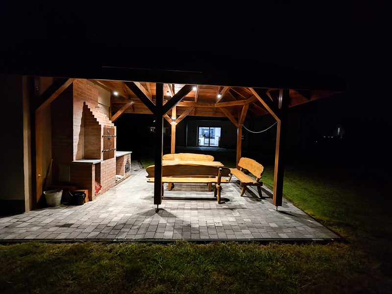 W ogrodzie znajduje się wiata grillowa z wędzarnią , która jest połączona z pomieszczeniem gospodarczym i piwniczka. Także jest przygotowane miejsce na basen.