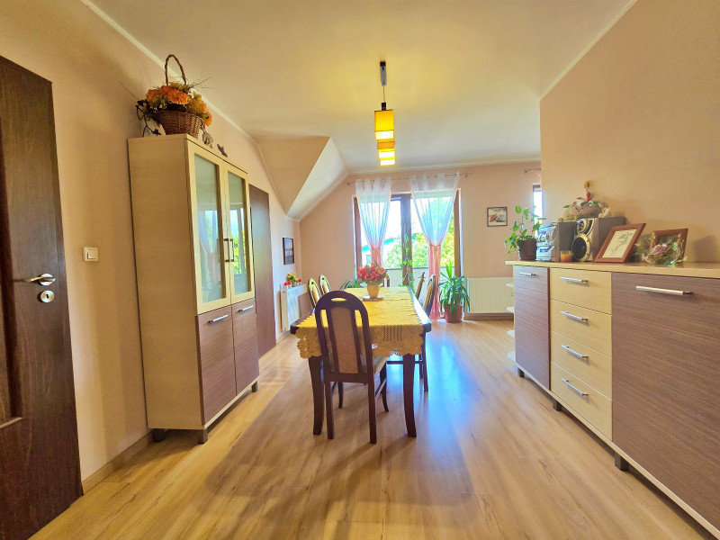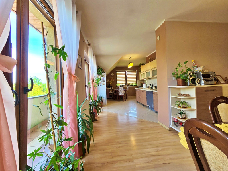 Część mieszkalna składa się z dużej kuchni wraz z dużą jadalnią, z których można wyjść na duży balkon, przy jadalni znajduje się spiżarnia , oraz pralnia.