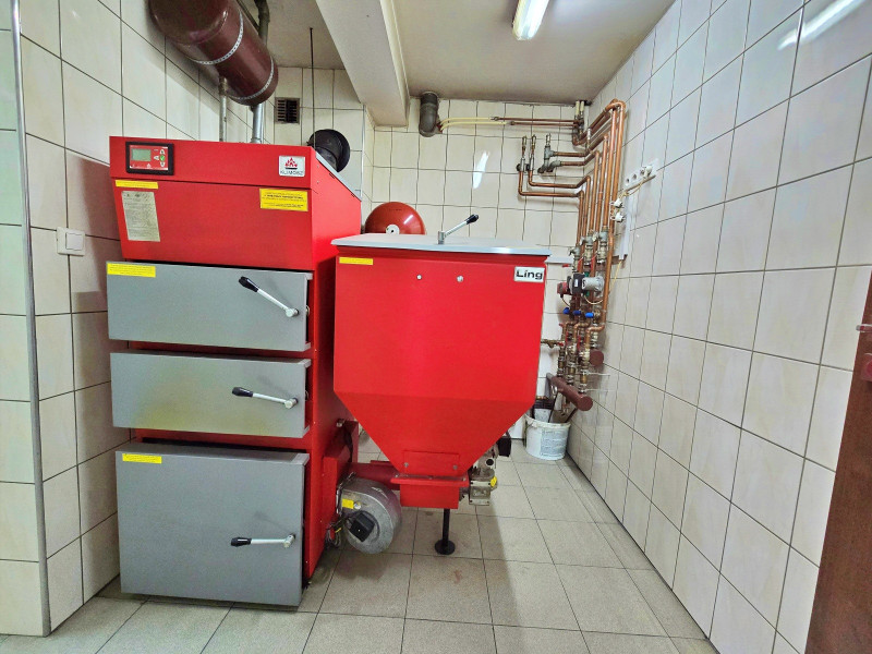 Drugim rozwiązaniem jest piec na paliwo stałe węglowy z podajnikiem na ekogroszek lub pelet KLIMOSZ 50kW. W jego miejsce można zastosować pompę ciepła.