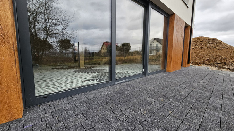 • Ogrzewanie podłogowe na całej powierzchni domu, łączenie z garażem