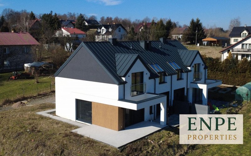 Mamy przyjemność przedstawić Państwu ofertę sprzedaży domu jednorodzinnego w zabudowie bliźniaczej z roku 2024 w Tomaszkowicach obok Wieliczki.