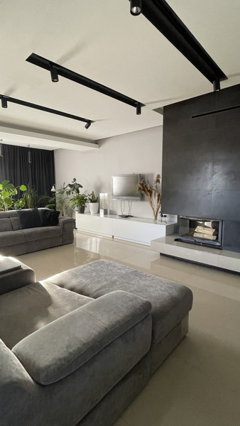 Część mieszkalna znajduje się na dwóch kondygnacjach – pierwszym i drugim piętrze, które są połączone funkcjonalną klatką schodową. Nieruchomość posiada trzy niezależne wejścia. Cześć mieszkalna składa się m.in z przestronnego salonu z otwartą kuchnią, łazienki, garderoby, gabinetu (łącznie ponad 100m2 na I piętrze) oraz czterech sypialni, dwóch łazienek, dwóch garderób (łącznie ponad 100m2 na II piętrze).