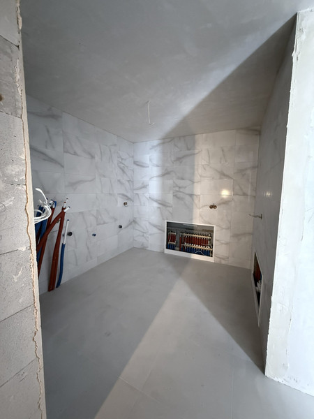 • Kotłownia wykończona (płytki ułożone, pomieszczenie gotowe do użytku, przygotowane przyłącza pod pralkę i suszarkę).