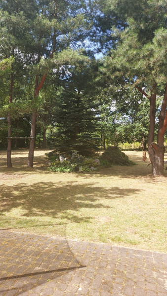 • duża, ładnie zagospodarowana działka 1700 m², drzewa: dąb ok. 30 letni, brzozy, modrzewie, sosny, jarzębiny, orzech i inne, a wzdłuż drogi podwójny szpaler tui