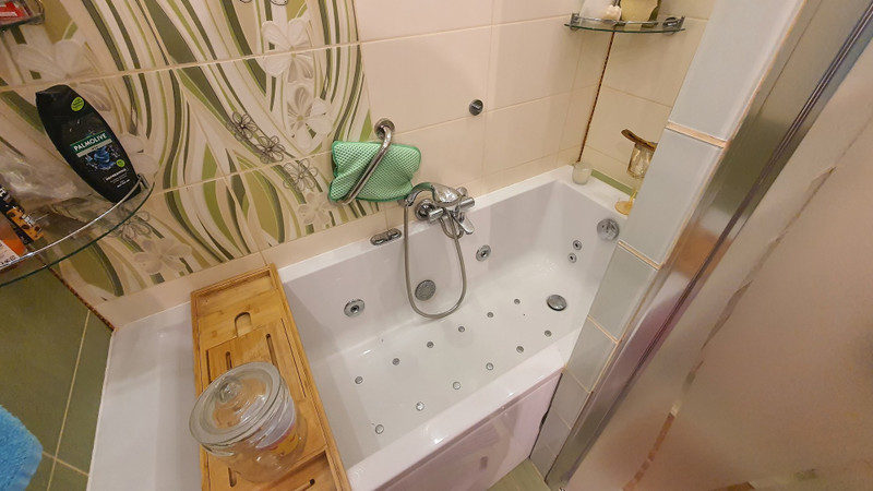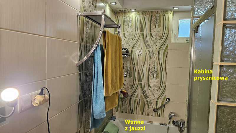 d) w łazience pralka, ogrzewana podłoga, bidet,