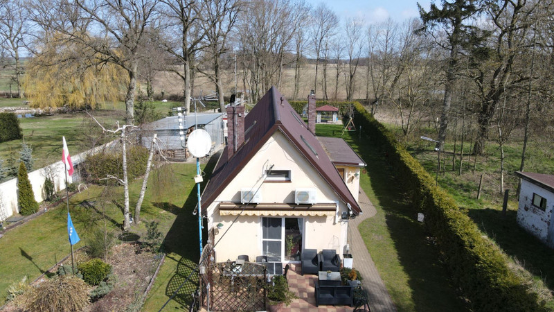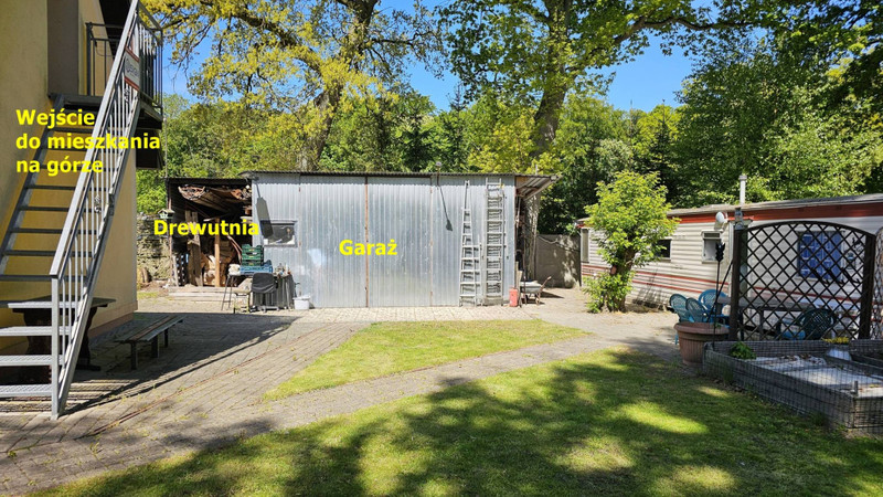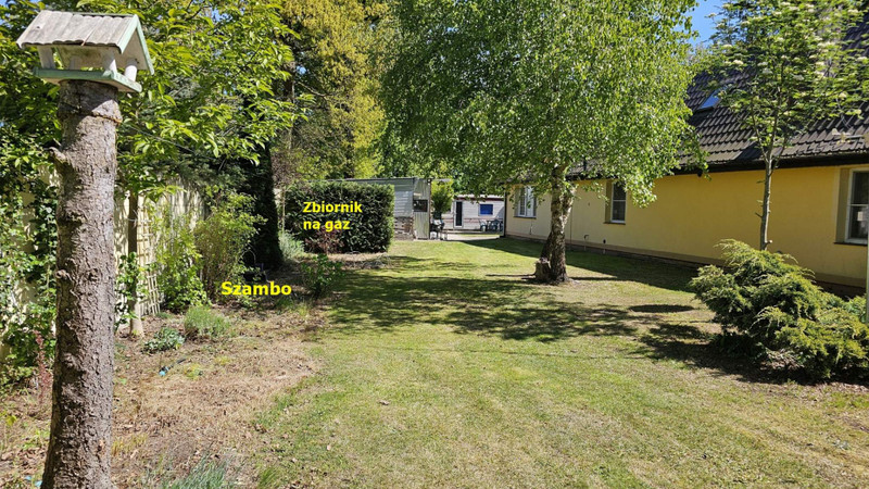 Ponadto na posesji znajduje się ocieplony garaż 30 m.kw; wiata na drewno, zagroda (6x3 m) z budą dla psa i automatycznym poidłem, wiata na rowery i podręczny sprzęt. W części rekreacyjnej działki jest wybudowana solidna wędzarnia na zimno i gorąco z wbudowanym rożnem, kuchnią polową, zlewem i bieżącą wodą oraz prądem.
