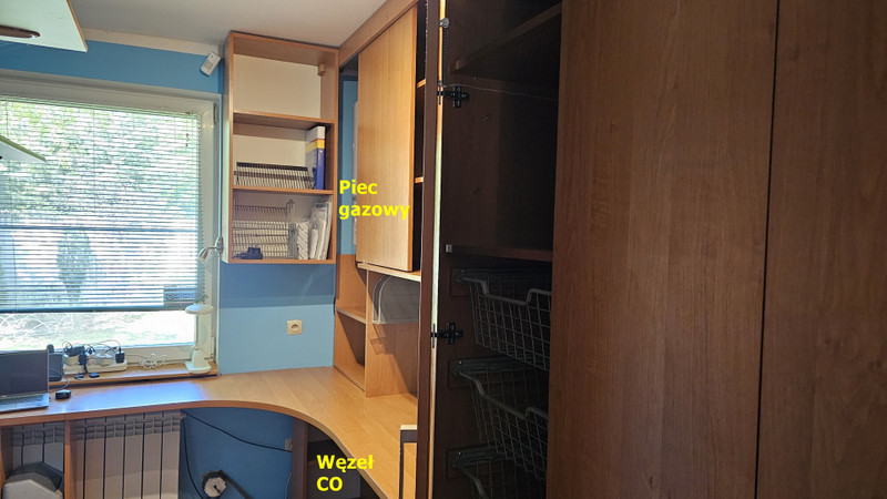 - zabudowane pod sufit szafki i regały w pomieszczeniu "biuro" ;