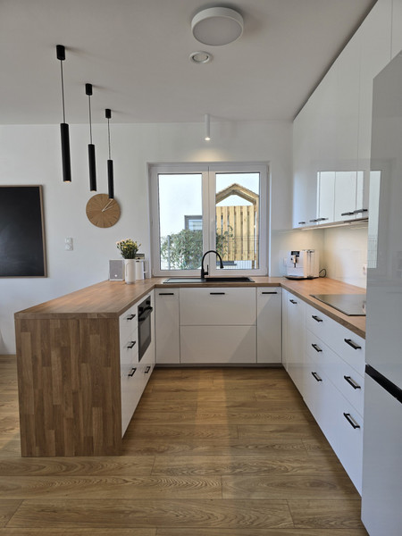 Najlepsze materiały, wysokość pomieszczeń na parterze i piętrze to ok. 280cm. W całym domu położone gładzie gipsowe i polimerowe. Drzwi wewnętrzne lakierowane z naturalnego dębu(fornir), schody z litego dębu. AGD wysokiej klasy z funkcjami smart o najwyższej klasie energooszczędności. I wiele innych perełek ;)