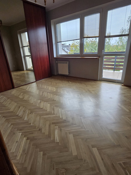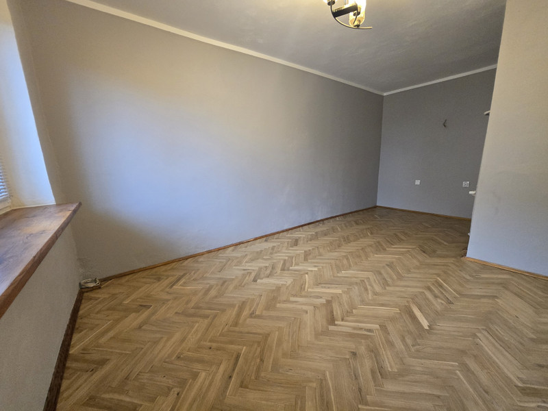 Podłogi francuskie dębowe po cyklinowaniu i odświeżone ściany. Nowa kuchnia i łazienka.