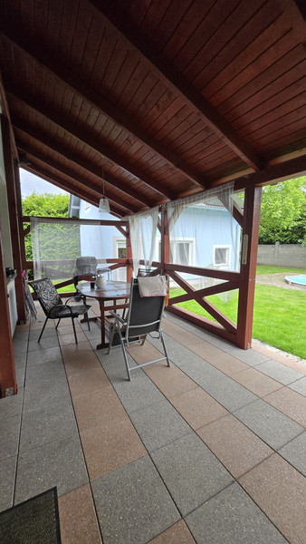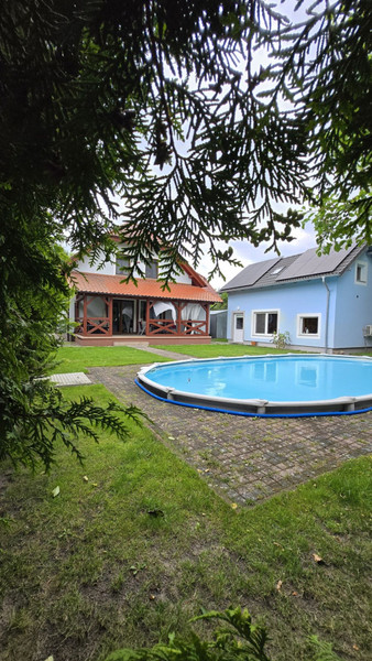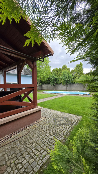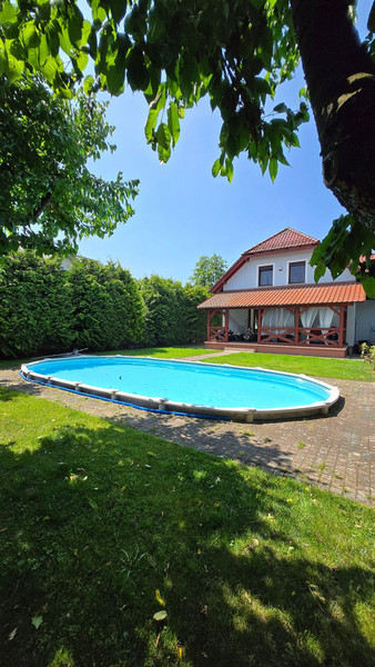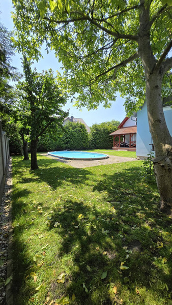 Prywatny basen o wymiarach 9 x 4 m i gł. 1,20 m otoczony zielenią ogrodu zapewnia idealne miejsce na relaks i przyjemne spędzanie czasu na świeżym powietrzu. W ogrodzie dominują drzewa owocowe i liczne nasadzenia kwiatów utrzymane w doskonałej kondycji także dzięki systemowi nawadniania.